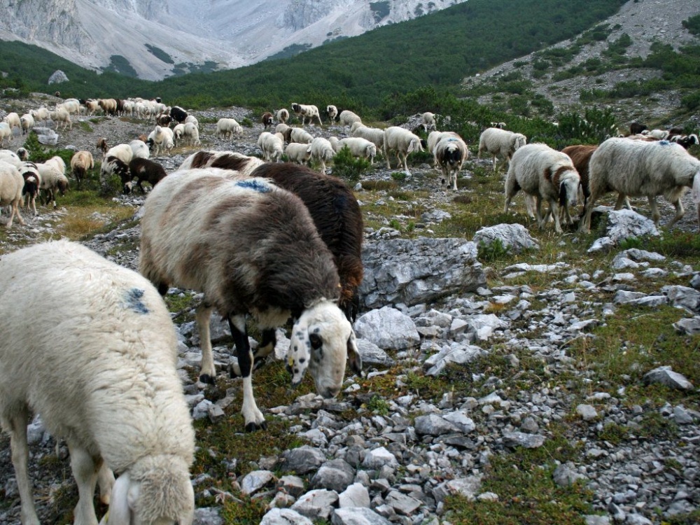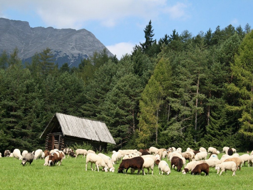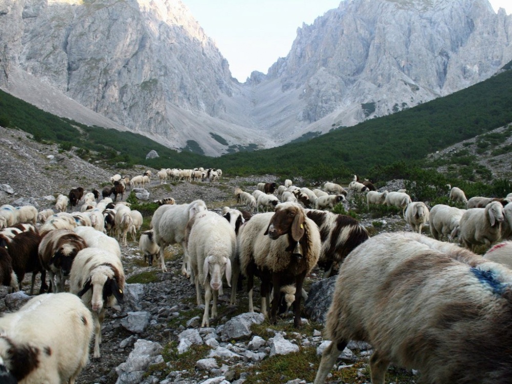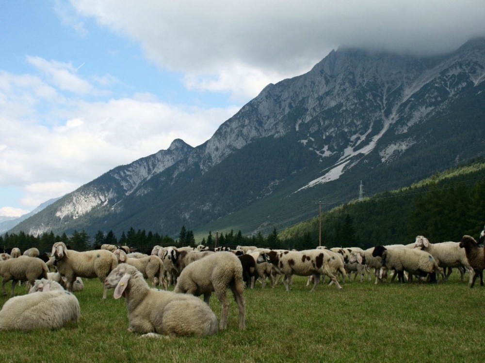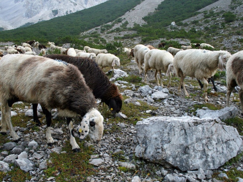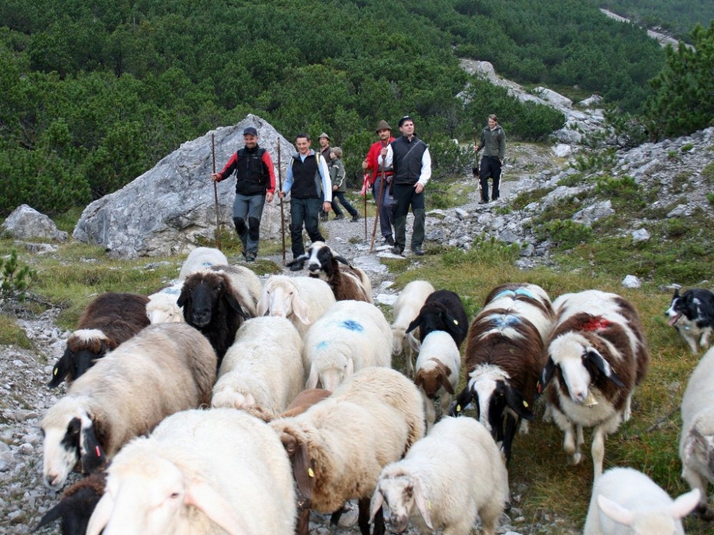 Um die 530 weiße, schwarzweiße, braunweiße, schwarze und Tscheggenschafe wurden ab Freitag gesammelt und auf eine Koppel am oberhalb der Seeben-Alm gelegenen Seebensee (1650 Höhenmeter) getrieben. Keine leichte Aufgaben für die Hirten, denn die Schafe weiden auch auf den umliegenden Bergen. Am Sonntagmorgen, pünktlich um 7 Uhr machte sich die Herde auf ihren Weg. Der führte zunächst durch das Klamml, zur Coburger Hütte (1917 Meter) und von dort, am Weg zum Oberanger, vorbei am Tajatörl, zur Grünsteinscharte. Gegen 9 Uhr passierte die Schafherde die 2272 hoch gelegene Grünsteinscharte. Wenig später den Ursprung, die Quelle der Gemeinde Obsteig und zog Richtung Lehnberghaus.
