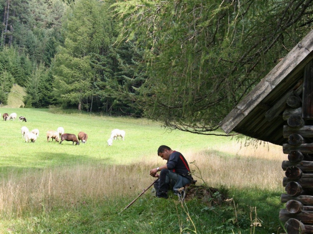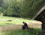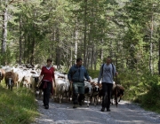 Gegen 10.30 Uhr wurde die rasch vorbei ziehende Schafherde am 1553 Meter hoch gelegenen Lehnberghaus von den Hüttenwirten Hans und Linde Auer begrüßt. Dass von Linde Auer zugerufene Angebot, doch auf ein „Schnapserl“ zu zukehren, war zwar verlockend, ließ aber der straffe Zeitplan der Hirten nicht zu. Das nächste Ziel musste erreicht werden, damit sich die Tiere erholen konnten und das war eine große Koppel am Gasthaus Arzkasten. Dort wurde von 11 bis 12.15 Uhr eine erste Pause eingelegt.