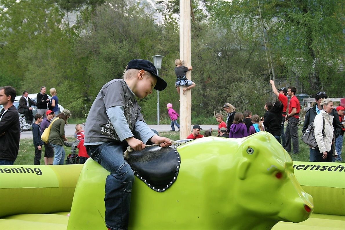 Das 3. Maifest in Mieming organisierten im Verbund Jungbauernschaft + Landjugend mit den Ortsbäuerinnen und Ortsbauern. Für die Braunviehschau war Gebietschef Martin Kapeller verantwortlich. Sein erster Kommentar am Nachmittag: „Das war eine Superschau und ein voller Erfolg auf allen Ebenen. Alles hat hervorragend funktioniert“. Viele hundert Besucher des Maifestes am Badesee bestätigten das Statement von Martin Kapeller. Die Maibaum-Kraxler wurden von der Bergrettung Mieming gesichert und holten sich Riesen-Brez’n und TVB-Gutscheine aus dem Baumkranz in 26 Meter Höhe.