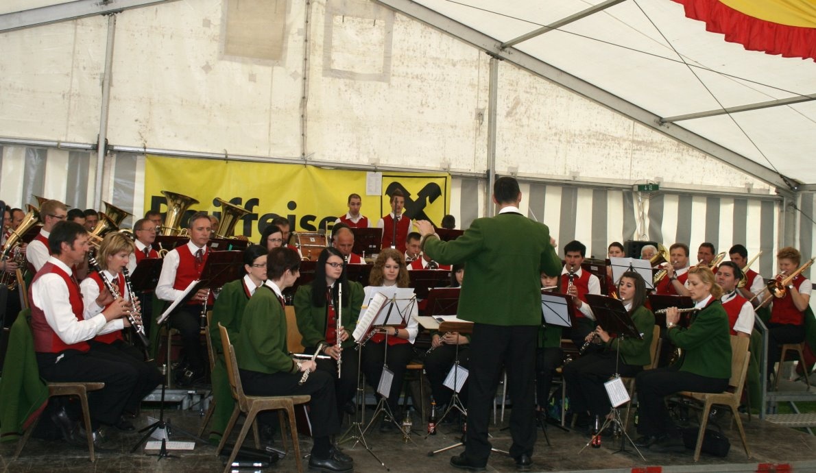 Das Frühschoppen-Konzert der Musikkapelle Mieming war ein musikalischer Streifzug durch die Welt der Unterhaltung. Unter der Leitung von Kapellmeister Christian Holzeis spielten die Musikanten traditionelle Märsche, bekannte Polkas, österreichische und böhmische Blasmusik, aber auch moderne Unterhaltungsmusik aus aller Welt. Kapellmeister Christian Holzeis überließ den Taktstock spontan zum Willkommen für ein Stück an seinen Kollegen Gilles Pariot, den Orchester-Chef unserer französischen Partnergemeinde Limas im Beaujolais. Gilles Pariot macht mit Frau Véronique und seinen beiden Töchtern ein paar Tage Ferien in Mieming.