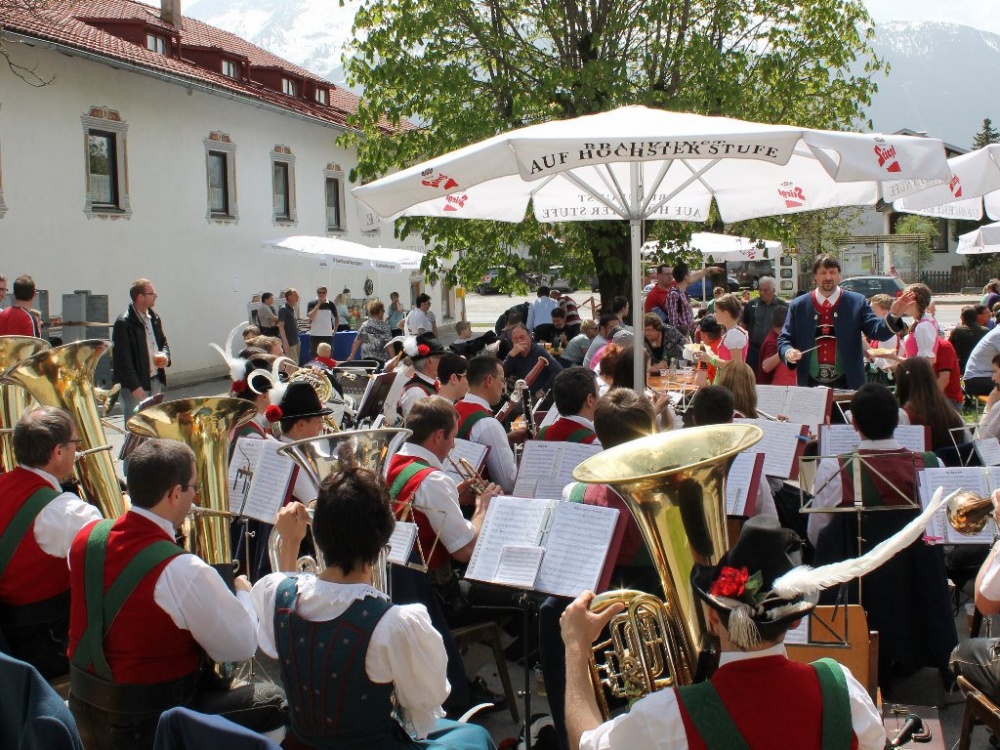 Zur Tradition des Mieminger Maifestes gehört inzwischen auch das Frühschoppen-Konzert der Musikkapelle Mieming. Für Kappellmeister Markus Aichner war es das 2. Maifest in dieser Funktion. Markus Aichner ließ die Dorfzeitung über seinen Notenbuch schauen. Die Musikkapelle spielte u.a. Den „Floriana-Marsch“, die „Böhmische Kirmes“ und die „Musikantenfest-Polka“ von Arnold Breitfuss, unserem Bezirksehrenkapellmeister. Zum 18. Geburtstag der Flötistin Stephanie Schlierenzauer gratulierte die Musikkapelle mit „Jubiläum 2000“ unter dem Decknamen „Jubiläum 1800“. Die „Südbömische Polka“ wurde für Mieming.online gespielt, ansonsten erinnern wir uns gerne an „The Liberty Bell-Marsch“, den Marsch „Mein Heimatland“, die „Fuchsgraben-Polka“ und „Wir Musikanten“. Alles Blasmusik-Highlights. Nach der Musikkapelle Mieming spielten die Stiegl-Buam, unter Markus Kranebitter, flotte Tanzmusik, bis zum späten Nachmittag.