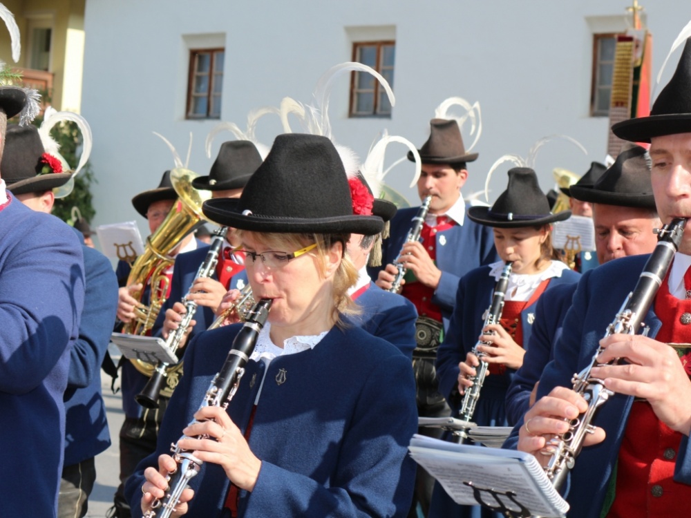 Alle Gäste schlossen sich dem Einzug in die Pfarrkirche Untermieming an und nahmen an der heiligen Messe mit Pfarrer Paulinus teil. Die Messe wurde musikalische von der Musikkapelle Mieming umrahmt, unter der Leitung von Kapellmeister Markus Aichner.