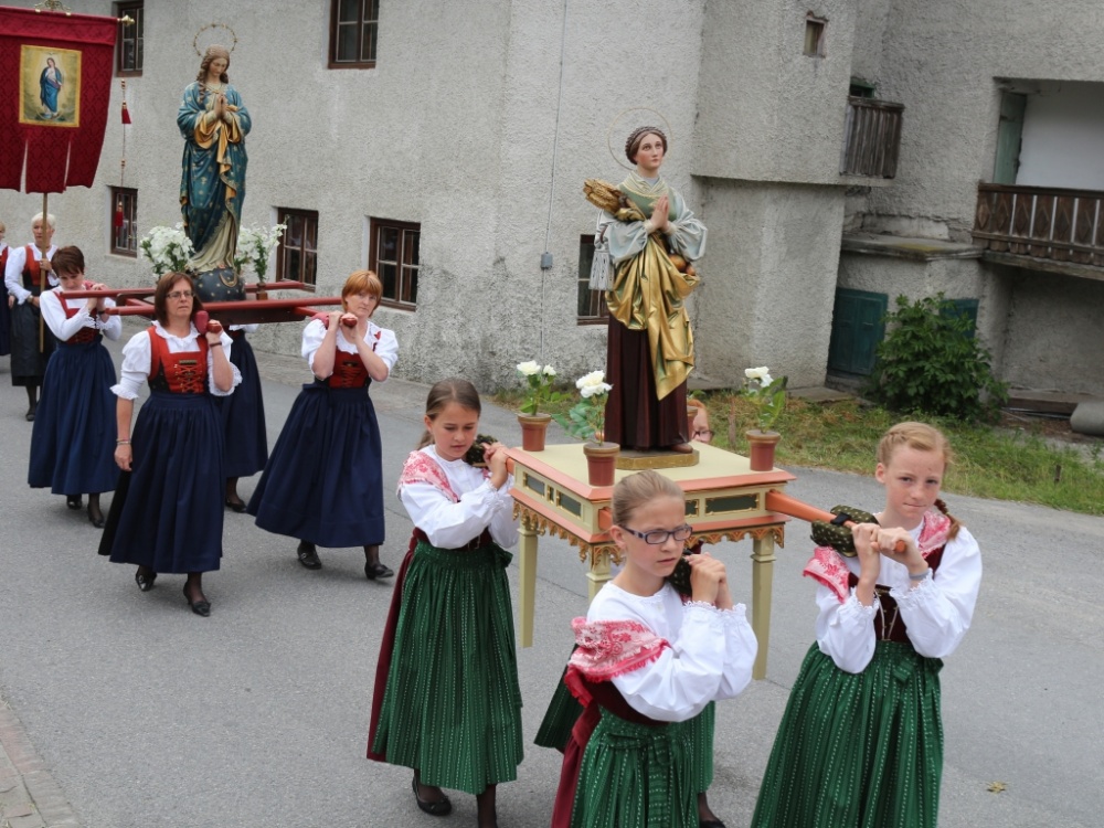 Im Anschluss an die Prozession lud die Schützenkompanie auf dem Kirchplatz in Untermieming zum Fest ein. Zum Auftakt spielte die Musikkapelle Mieming. Das Fest ist immer auch eine Gelegenheit zum Gespräch. In der Bauernschaft wurde beispielsweise u.a. über den Beginn der Erdäpfelernte und des Almsommers geredet. Dabei war zu erfahren, dass die Untermieminger Schafe schon auf der Seeben-Alm sind. Das Vieh aus Obermieming wurde Anfang der Woche zur Hochfeldern-Alm geführt. Am kommenden Dienstag kommt das Vieh der Barwieser Bauern auf die Marienberg-Alm.