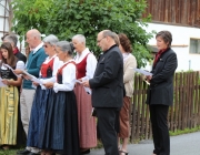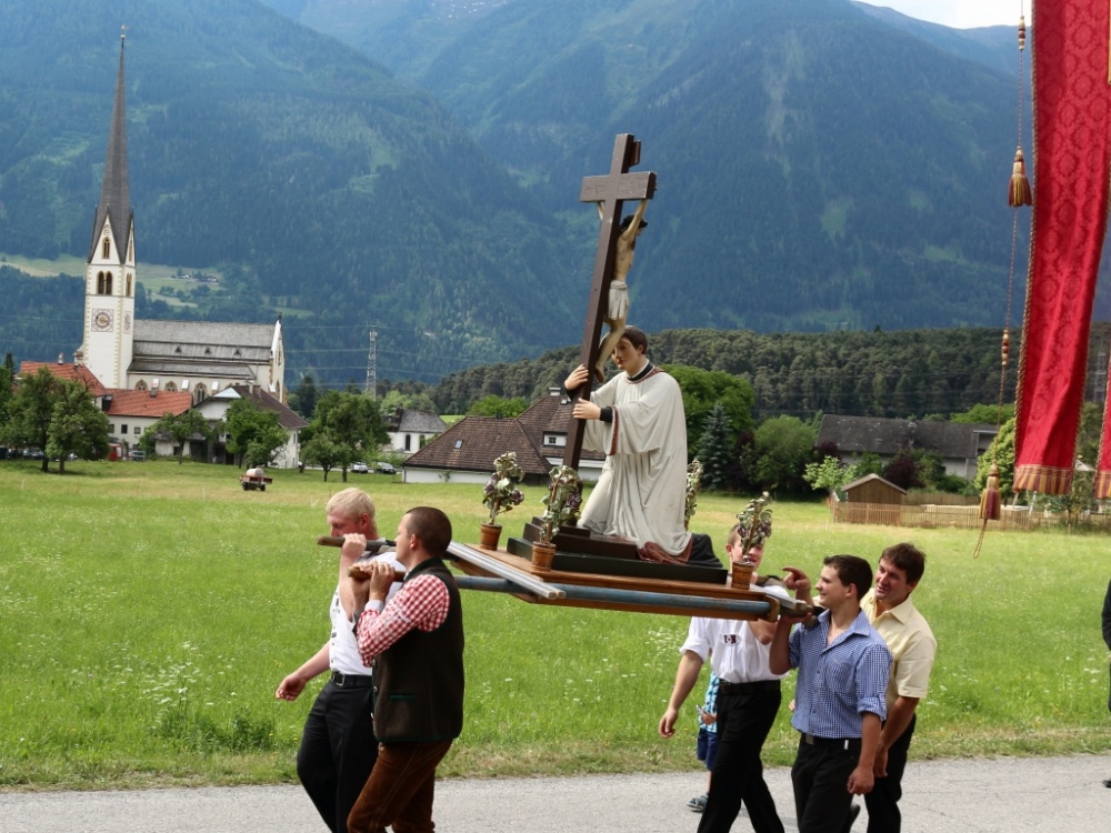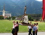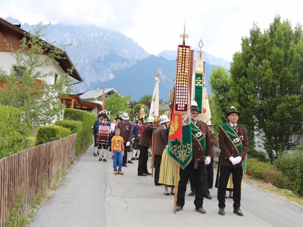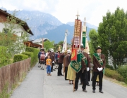 Nach der Messe führte die Fronleichnams-Prozession in Untermieming zum Kreuz bei der Volksschule, von dort zum Kreuz nahe der früheren Villa Waldschmidt, zum Altar am Hause Dengg, beim Mesnerhaus und schließlich zur 4. Station an der Pfarrkirche. Die Prozession wird bei uns traditionell von der Musikkapelle Mieming angeführt, gefolgt von einer Delegation der Freiwilligen Feuerwehr, der Schützenkompanie Mieming, den Kindern, der gesamten Bauernschaft, den Handwerksständen, der Landfrauen, den Jungbauern und der Landjugend.