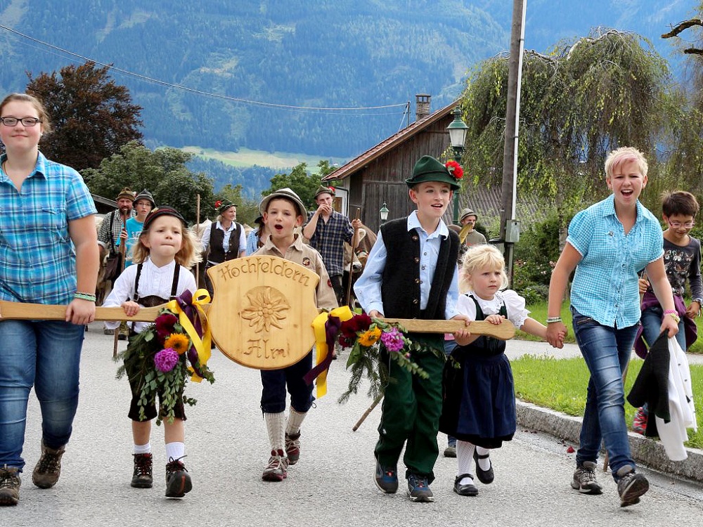 Bei der Ehrung der Hirtenfamilie Norbert Kluckner, für ein Vierteljahrhundert erfolgreiche Hirtenarbeit auf der Hochfeldern Alm, wurde nach jedem Satz zustimmend applaudiert. Die Bilder von Michael Sonnweber und Barbara Spielmann müssen gar nicht kommentiert werden. Sie sprechen für sich. “Wir bedanken uns auch und gang besonders bei unserer Feuerwehr”, so Klaus Scharmer, “ohne die ein solch aufwändiger Almabtrieb nicht durchführbar wäre. Die Mieminger Feuerwehrleute sperrten Straßen ab, informierten die Anwohner in Telfs über das Ereignis und sorgten einmal mehr dafür, dass dieses schwierige Unternehmen durchgeführt werden konnte, ohne dass jemand einen Schaden zu beklagen hätte.