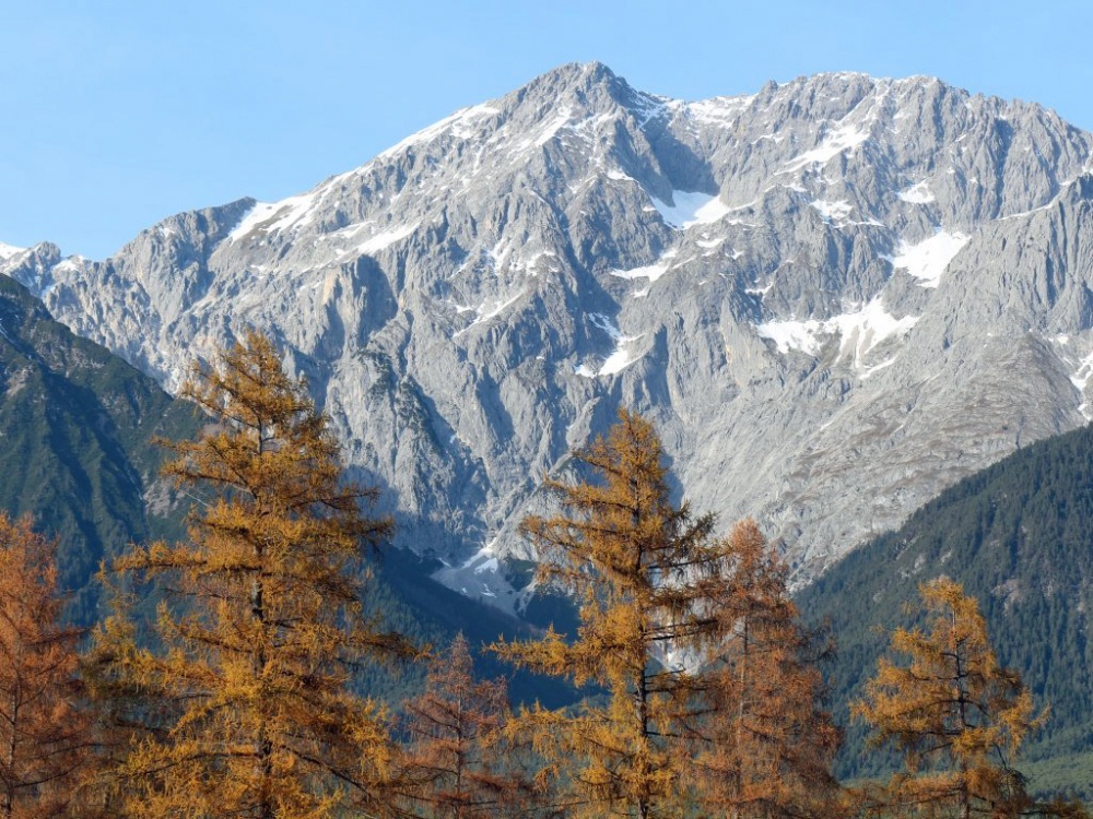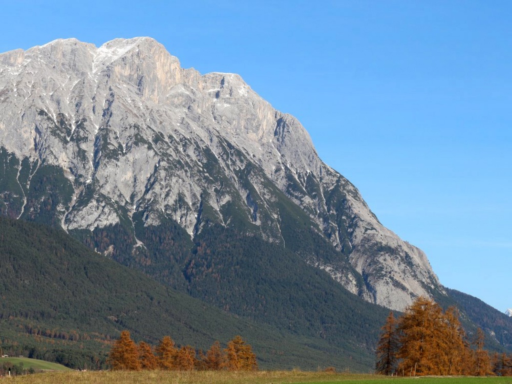 Faszination Heimat. Vielfach fotografiert und in früheren Jahren auch gerne als Postkartenmotive in ferne Länder verschickt. Die Lärchen berühren. Die Lärche war in Österreich 2002 Baum des Jahres. Sie gehört zur Familie der Kieferngewächse. Lärchen stehen überwiegend in Wirtschaftswäldern. Sie sind beliebt in der Möbelindustrie. Auf den Mooswiesen und am Fuße der Mieminger Berge genießen die Lärchen einen Sonderstatus. Sie sind Teil unserer Kulturlandschaft.
