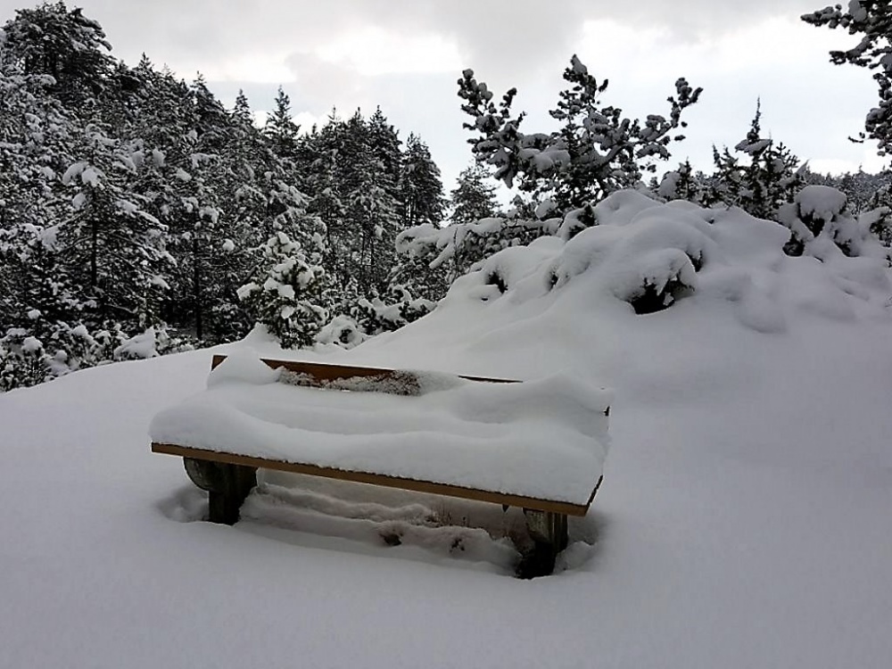Je höher ich komme, um so weniger Fußspuren sehe ich. An der Abzweigung zur Lacke und Obsteig sehe ich die Obere Boasligbrücke und die schneebedeckte Bank. Ich mache mit meinem Smartphone ein paar Bilder. Zur Bank fällt mir als Untertitel „unberührt“ ein. Niemand hat bislang seine Spuren im ca. 30 bis 40 cm hohen Neuschnee hinterlassen. Ich habe das respektiert und bin direkt zur Brücke gegangen. Bis zur Oberen Stöttlbrücke wären es nur noch 15 Gehminuten gewesen, aber für den unberührten Schnee war ich heute wieder einmal zu schlecht ausgerüstet. Meine Jeans waren schon bis unter die Knie nass.
