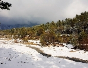 Mein Weg führt mich über die untere Stöttlbrücke in Obermieming, über den Rundwanderweg (Pfad) Richtung Moosalm/Barwies und auf halber Strecke über den Wanderweg B15 (rechts vom Stöttlbach) zur Oberen Boasligbrücke. Auf dem ganzen Weg – hin und zurück – begegnet mir am frühen Vormittag nur ein Mann, der seinen Hund ausführt und es offenbar sehr eilig hat. Und doch sind wohl am frühen Morgen ein bis zwei Wanderer diesen Weg gegangen. Das verraten die Spuren im Schnee.