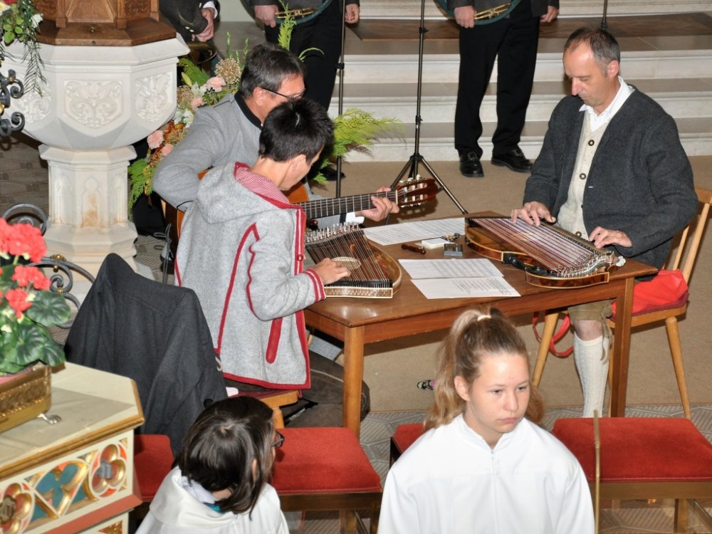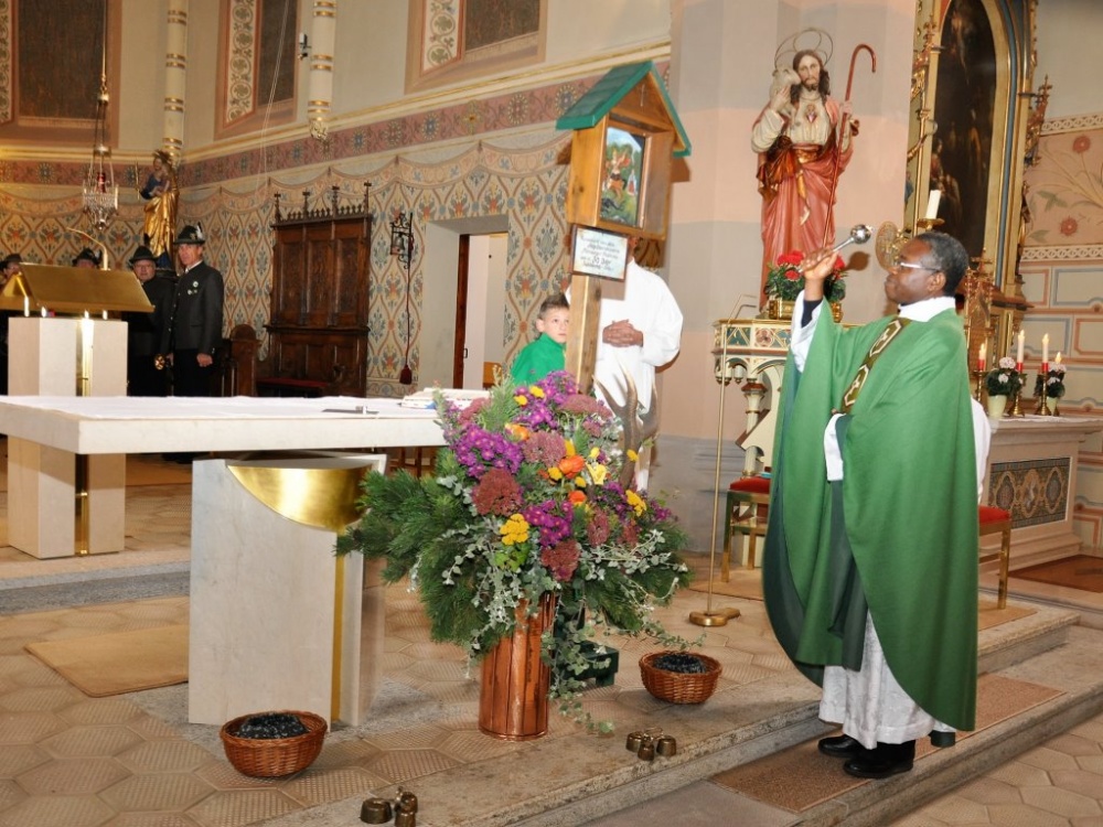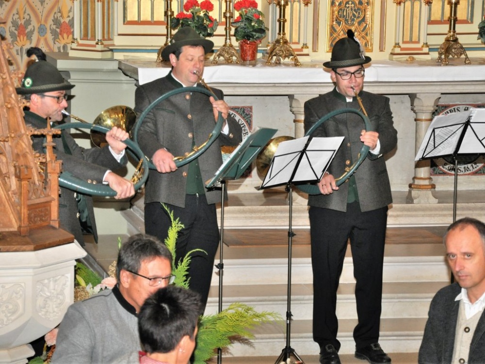 Der Festgottesdienst in der Pfarrkirche Untermieming, zelebriert von HH Pfarrer Paulinus Okachi, wurde von den Oberländer Jagdhornbläsern und einem Saitentrio musikalisch umrahmt.