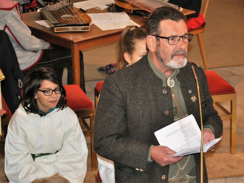 Die Oberländer Jagdhornbläser, unter der Leitung von Hornmeister Hanspeter Pranger, traten mit drei großen (Parforce) und vier kleinen (Pleß) Hörnern beinahe in voller Besetzung auf. Als gelungene Ergänzung zu den volltönenden Jagdhornklängen erwiesen sich die sanft klingenden Weisen der Saitenmusik, gespielt mit zwei Zithern und einer Gitarre, mit Andrea Scharmer, Alfred Wieser und Martin Fritz. Zu Ende des Gottesdienstes wurde von Pfarrer Paulinus ein St. Georgs Marterl gesegnet, dessen Renovierung die Jagdhornbläser übernommen hatten.