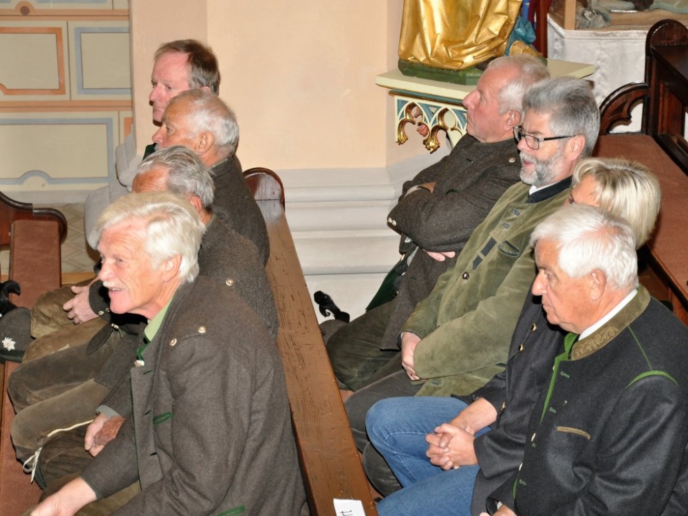 Karl gab daraufhin einen Rückblick auf die 30 Jahre des Bestehens der „Jagdhornbläser Mieminger Plateau“, wobei er die Verdienste der Gründungsmitglieder in besonderer Weise würdigte, allen voran den ersten Hornmeister, Johann Krug (Kassler Hans) aus Gschwent. Von den sieben Gründungsmitgliedern konnten noch fünf am Festgottesdienst teilnehmen. Für die inzwischen verstorbenen Mitglieder wurde das „Jagd vorbei“ geblasen, bei dem für kurze Zeit ergreifende Stille in der Kirche herrschte.
