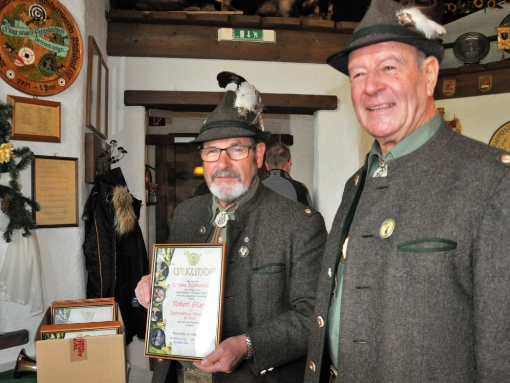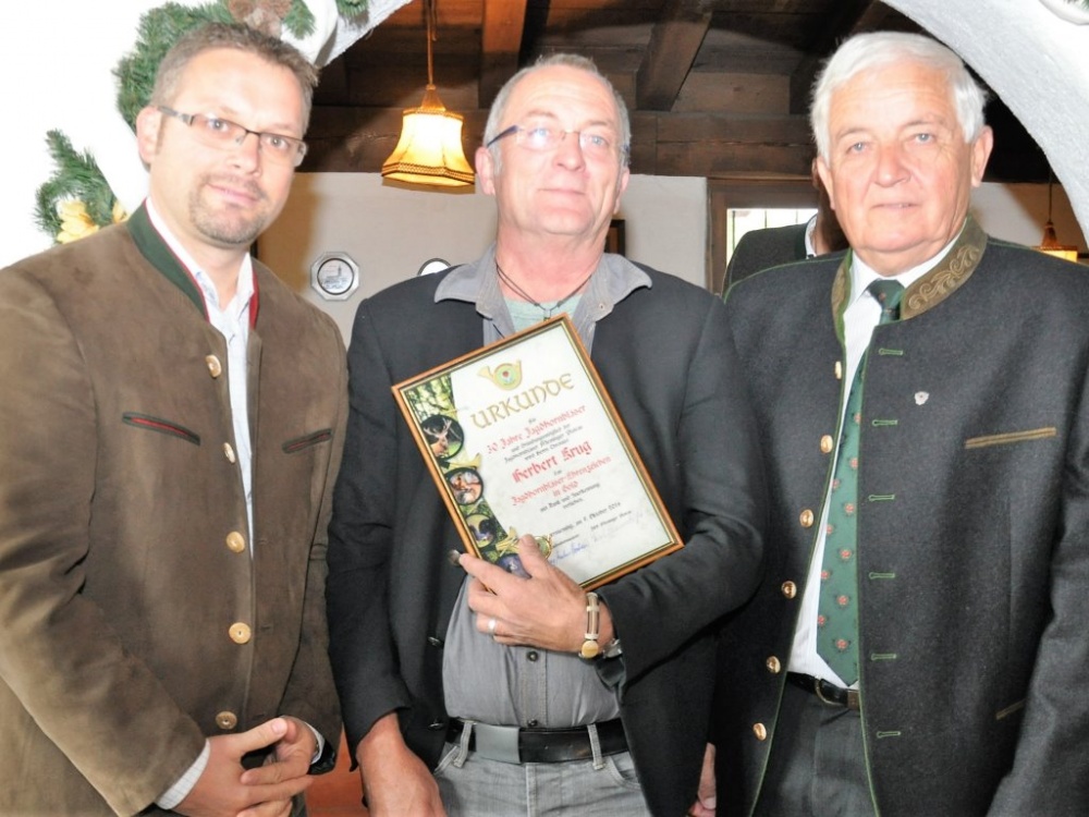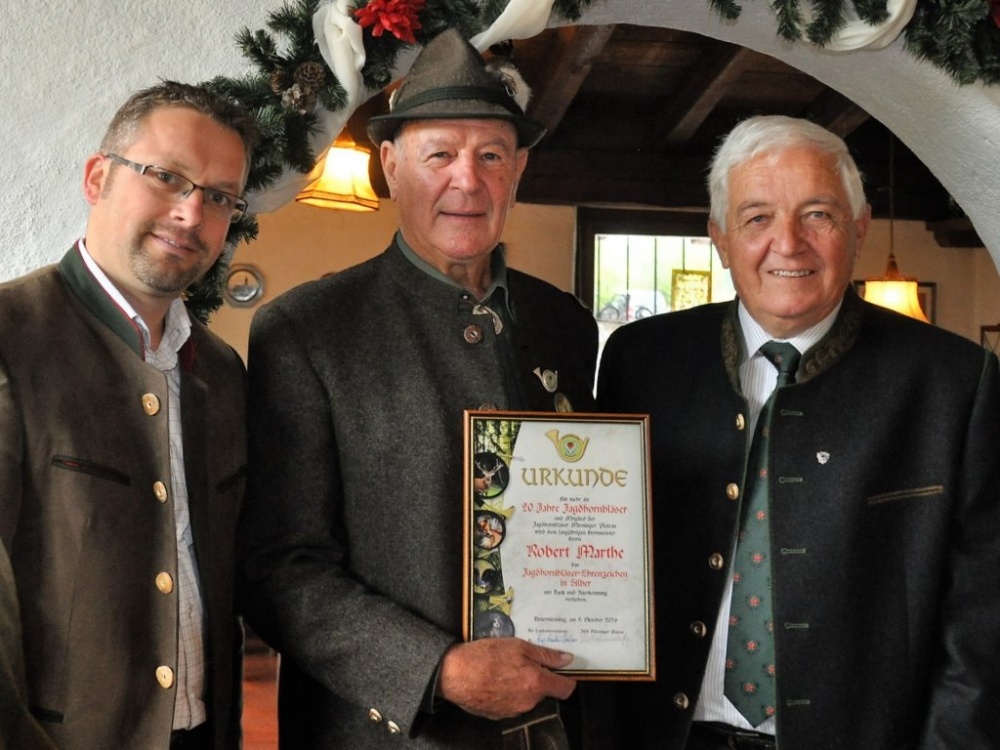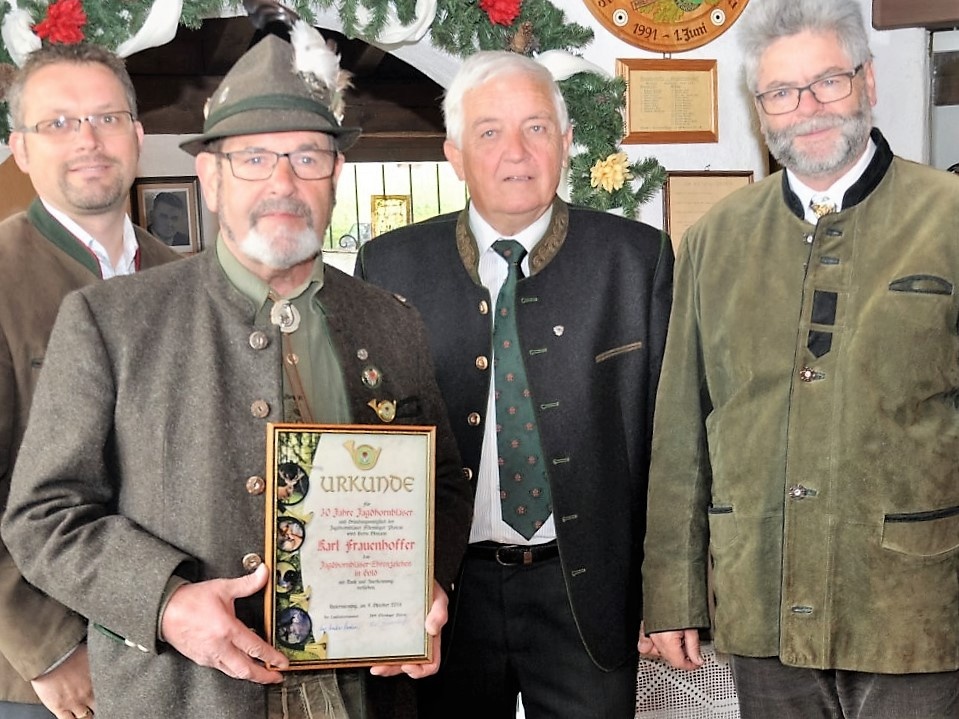 Die Jagdhornbläser, die über all die Jahre dem Bläserkreis die Treue gehalten haben, wurden für ihre Verdienste vom Landes-Hornmeister, dem Bezirksjägermeister und unserem Hornmeister, Karl Frauenhoffer, mit Urkunden und Abzeichen ausgezeichnet. Karl selbst erhielt für sein Wirken das Goldene Ehrenzeichen des Landesverbandes.