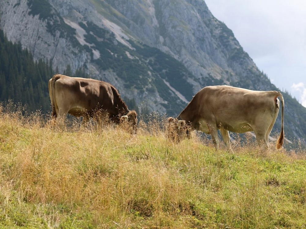 Auf der Feldernalm weiden heuer 238 Stück Vieh. Im Stall halten die Almhirten und Pächter der Hochfeldern Alm – Martin Reich und Fabio Riml – neun Kühe zur erfolgreichen Produktion von Almmilch, Almbutter und Graukas.