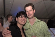 Gefeiert wurde im vollen Haus auf vier Ebenen. Zentraler Treffpunkt war die 20 Meter lange Zeltbar. In der Weinlaube, eine Ebene tiefer, brachte manch edler Tropfen die Nachtschwärmer in Feierlaune.