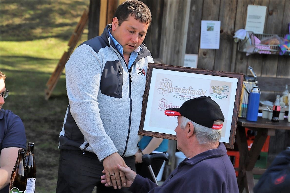 Der Verein Schafbad Fiecht ist vor zwanzig Jahren gegründet worden. Obmann Manfred Krug führte aus, dass die beiden Geehrten zu den Gründervätern des Vereins gehören. Johann „Hansl“ Maurer war über 18 Jahre lang Bademeister und die „Gute Seele am Schafbad“. Krankheitsbedingt musste er vor zwei Jahren das Amt an Sohn Dietmar Maurer übergeben.