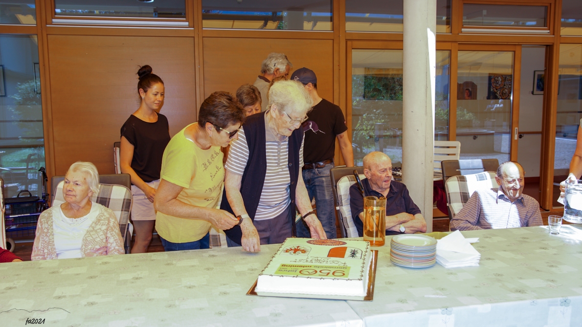 Das Rochusfest in Obermieming ist leider ausgefallen. Anna Scharmer holt den Kuchenanschnitt im Sozialzentrum Mieming nach.
