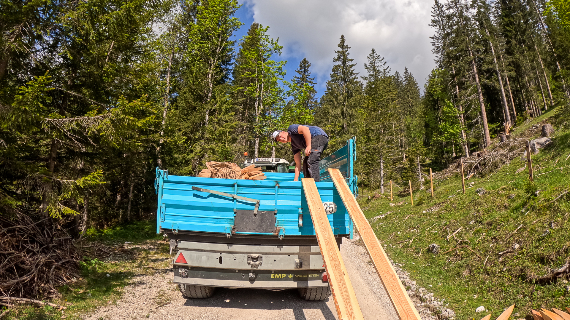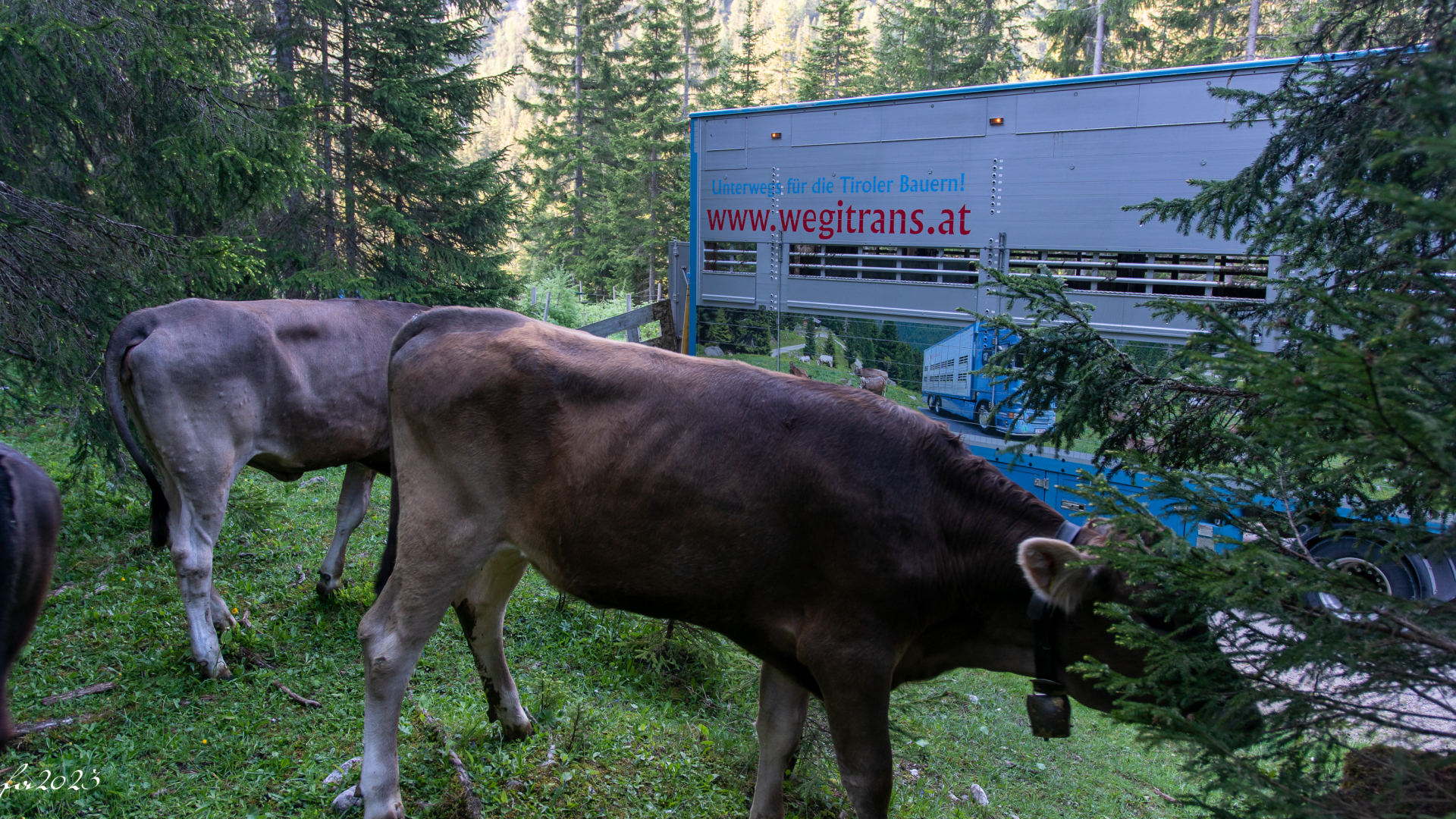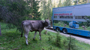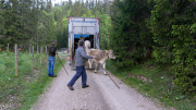 Wegi, er transportiert seit Jahren die Almtiere der Obermieminger Bauern auf die Hochfeldernalm, ist bereit zum Verladen der Tiere. Andreas Scharmer, Almobmann der Hochfeldernalm: “ Martin Wegscheider und sein Team aus Tulfes, ist die erste Wahl beim Transport von Tieren. „Unterwegs für die Tiroler Bauern“ ist spezialisiert auf Viehtransport und kennt den Weg zur Hochfeldern Alm inzwischen auswendig“.